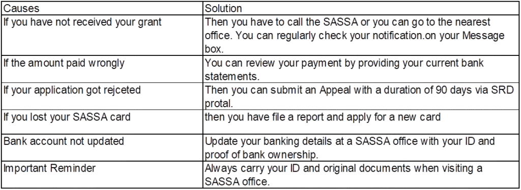 • You can know about your payment status by visiting a SASSA-approved post office or retailer on payout days.